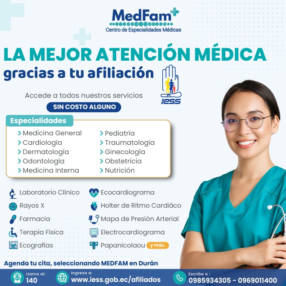 «Profesionales, amables y con tecnología moderna. MEDFAM es mi centro médico de confianza.»